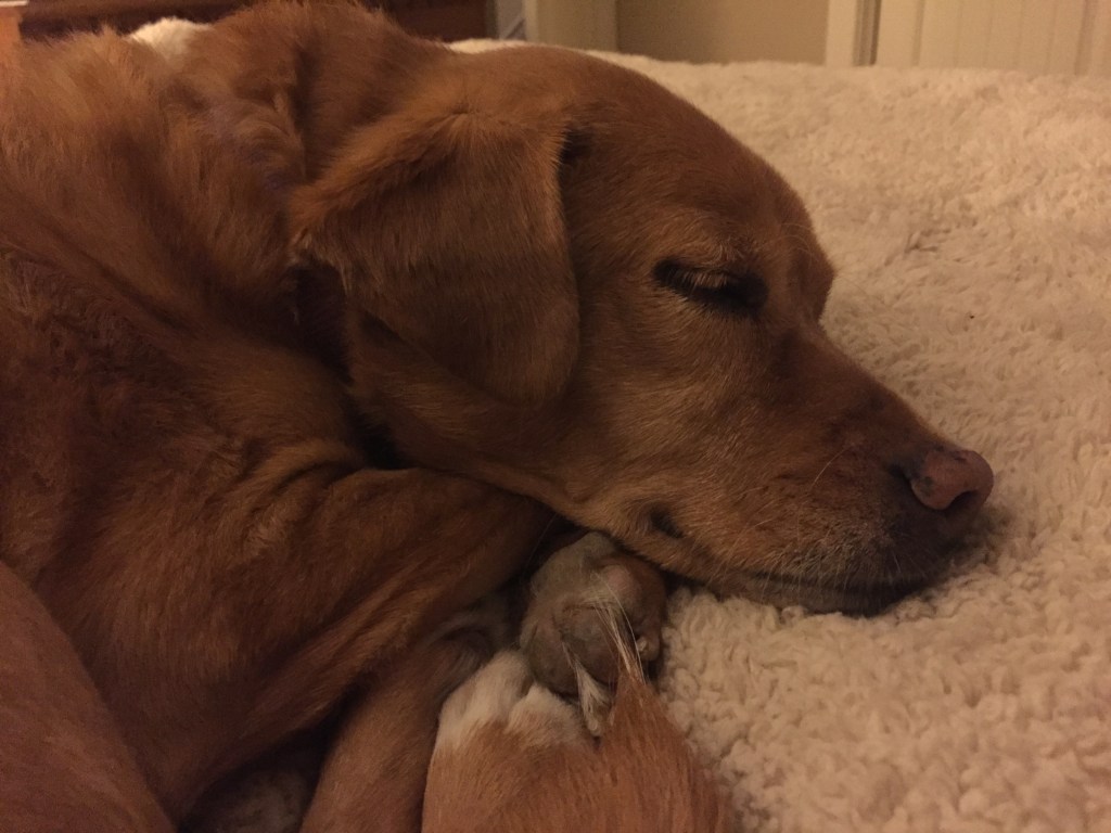 For days I have been thinking about what I could write about her. As the hours passed on muted morning commutes and oddly silent sunrises and sunsets, I finally realized that it will be a long time before we don’t expect her to come say hi after she wakes from a nap. I miss the water on the floor next to her mat on the edge of the kitchen. I miss the look in her eyes when I held up the leash before we went on a walk. I miss the Milk-Bone crumbs she left on the living room rug. I miss my friend, and it makes me terribly sad.