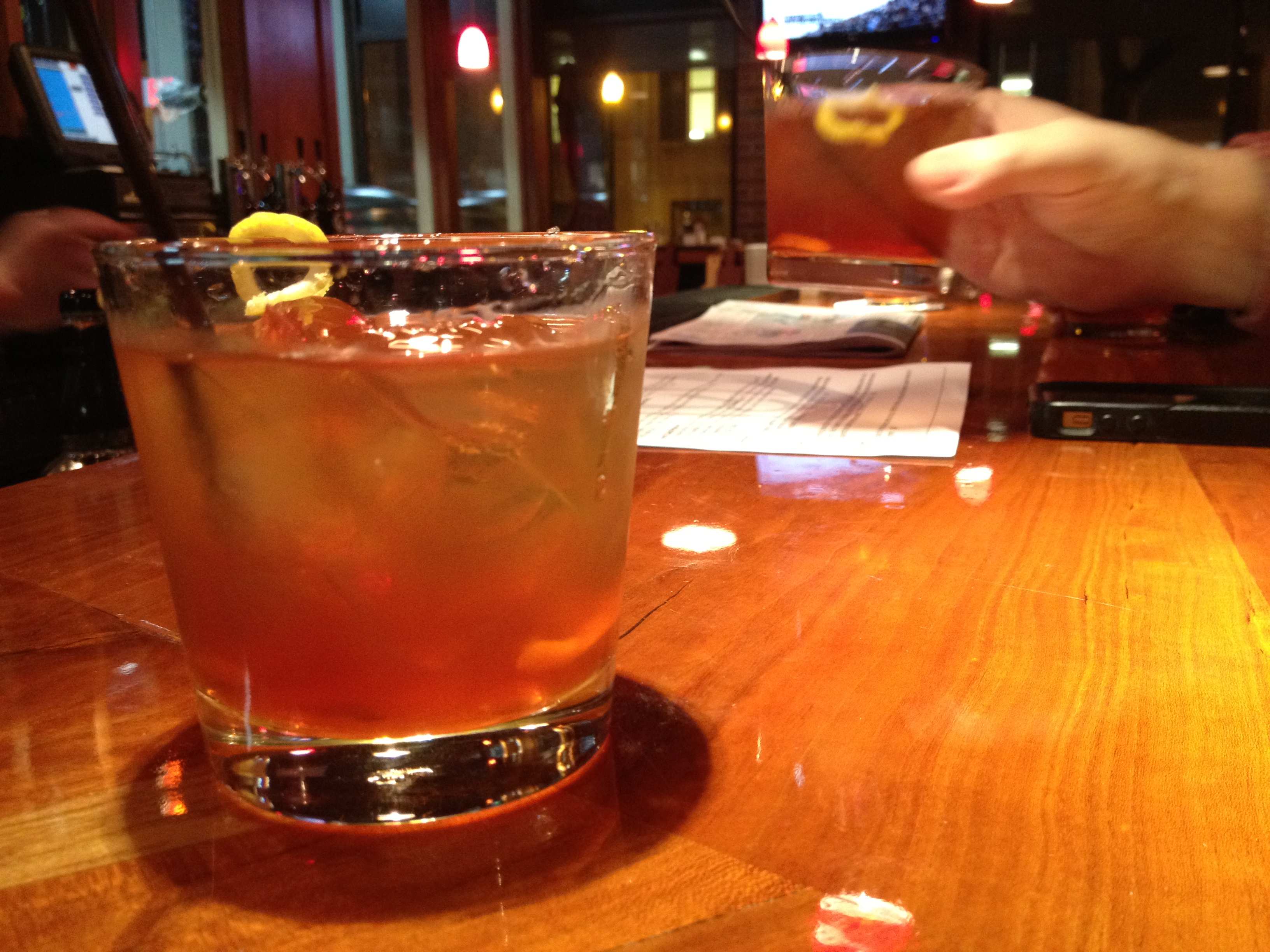 Somehow mixed drinks came up, and I said, somewhat panicked, “I’ve never had an Old-Fashioned!” George said that he hadn’t either. Josh the bartender smiled, and said, “May I make you gentlemen one?” George said, “On me!” And that was that. When the drinks were ready, I said, “Don Draper, motherfucker!” Down the drinks went. That round, a few more rounds.