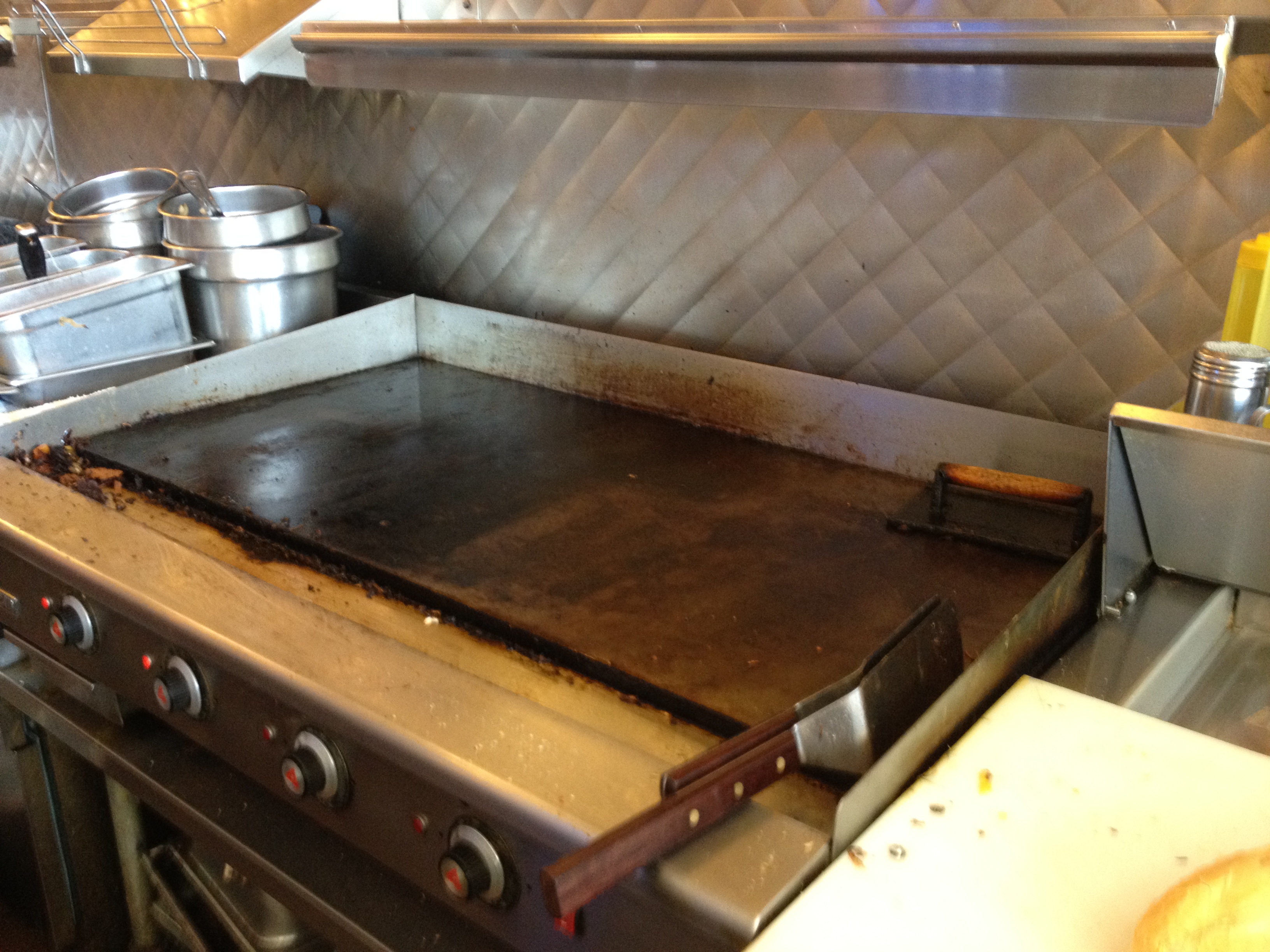 There’s four of us on deck, and when I’m on the grill, I’m making music and film references as often as possible. We laugh. A lot. Oh, we’ll acknowledge you when you come in. We’ll say Hi. We’ll chit-chat with you. We’re not robots. We don’t hate life. Fuck, man. We are happy to see you, because without your cash, we’re not doing much. I’ll give you the Bro nod. However, the love affair ends shortly after that.This is still business, kid.